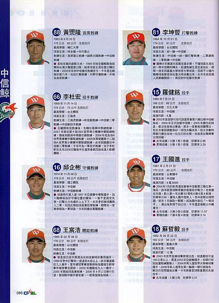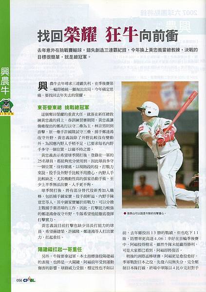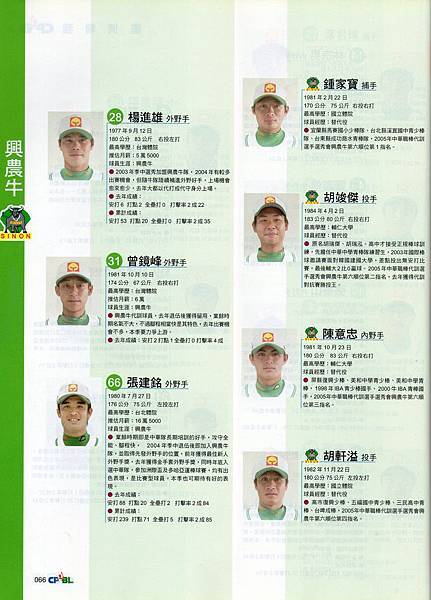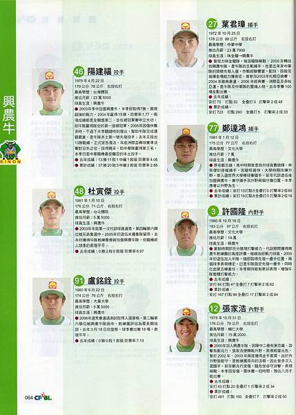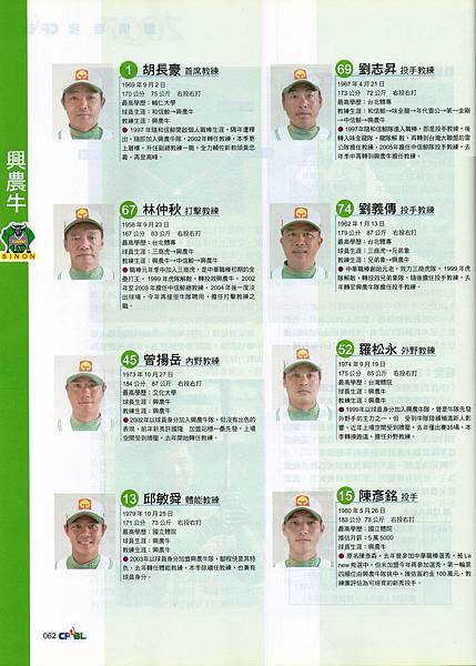 職棒十八年球團點將錄在牛隊的29人名單中,黃忠義及邱敏舜為教練兼球員身份。另外,季中補進的球員為栗田雄介、飛雷、林馴偉及吳柏宏等4人。