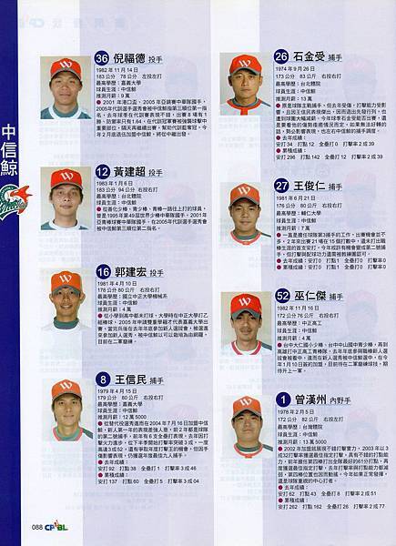 在鯨隊的36人名單中,巫仁傑、陳志高及鄭安庭未出現在季終職棒年鑑的記錄中。另外,季中補進的球員為王玉麒、洛雷、沙拉登、克里斯、喬帥、凱文、藤本博史、卡洛斯、洛可及馬帝那等10人。